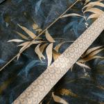 Comme un cocon réconfortant, le bois chaud s’harmonise aux teintes profondes et réchauffe l’âme. Les contrastes entre les teintes profondes d’un presque noir et les nuances bleu nuit et de beige doré créent une composition apaisante et illustrent le luxe dans sa simplicité.